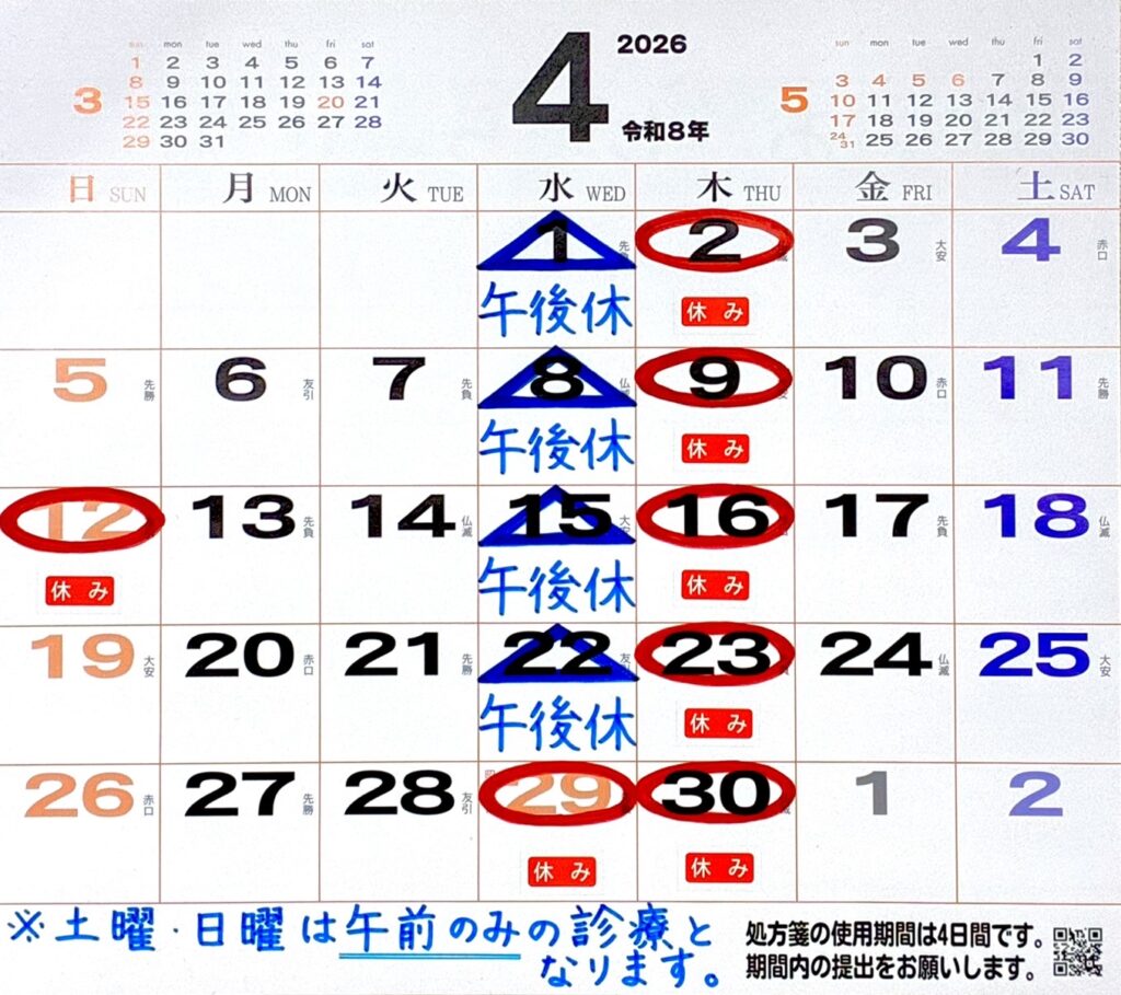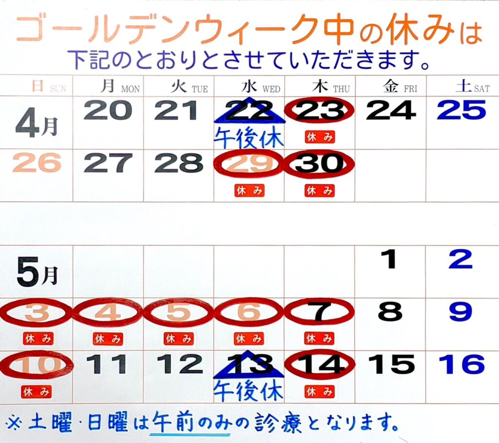 上記以外の水曜・土日院長・小森医師の2診体制で診療いたします。